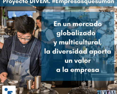 DIVEM es un proyecto que busca fomentar la diversidad en la empresa, promoviendo su sostenibilidad. A través de DIVEM queremos sensibilizar al sector empresarial, potenciando la gestión del talento y la diversidad como aspectos innovadores que le aportan a la organización un valor añadido. Un aspecto fundamental que queremos poner de relieve es que la diversidad es un activo a tener en cuenta por las empresas a la hora de desarrollar su estrategia de RSC.