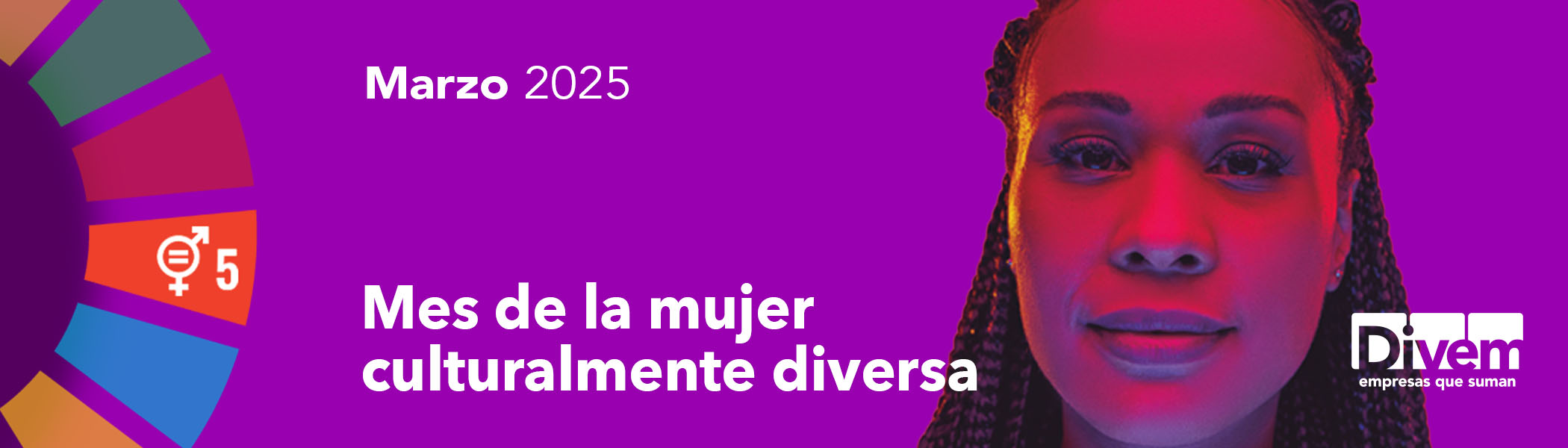 Desde DIVEM enfocamos la mirada en las mujeres culturalmente diversas, ofreciendo a grandes empresas, pymes y asociaciones empresariales, durante todo el mes de marzo, herramientas que ayuden a la creación y consolidación de referentes de mujeres culturalmente diversas, a impulsar su talento y a la construcción y mantenimiento de entornos laborales más inclusivos a través del ODS 5 para la igualdad de género.