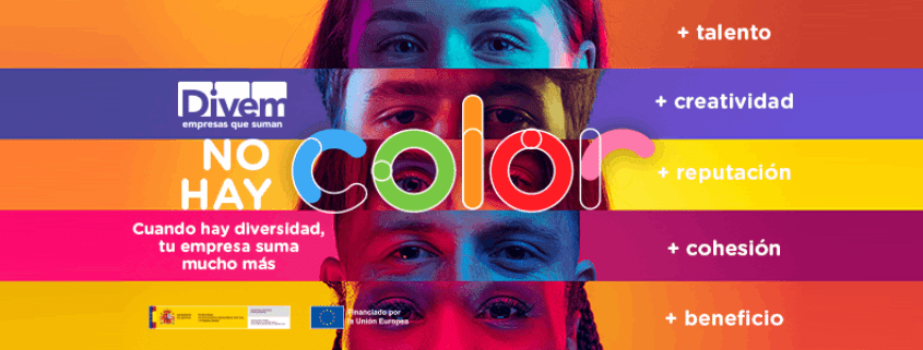 Este jueves 7 de noviembre, durante la celebración del encuentro empresarial “Del compromiso corporativo al impacto social”, se ha realizado la presentación de la campaña titulada “No hay color” con la que desde DIVEM seguimos trabajando para poner en valor todas las ventajas que aporta al tejido empresarial una correcta gestión de esta diversidad y la puesta en marcha de acciones enfocadas a poner fin a la discriminación en el entorno laboral. A través de esta campaña se hace un recorrido por estos beneficios, destacando cinco de ellos: más talento, más creatividad, mejor reputación, mayor cohesión y el aumento de posibilidades de incrementar los beneficios financieros.
